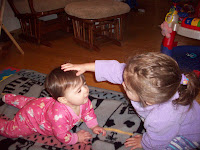 As if a magic switch had been turned on, Katelyn quickly resumed to many of her old activities. She now walks up and down the stairs completely independently, feeds herself (she even used a fork and spoon tonight and she did well!), doesn't require Mama and Dada to be in the same room with her all of the time, and she even has been incredibly sweet with her baby sister. She is constantly laughing and smiling, and you can just see the difference in her. Also, her language has just exploded and she is actually starting to form sentences! And to think, just a few months ago, we weren't sure if she would ever say more than one- or two-word phrases.